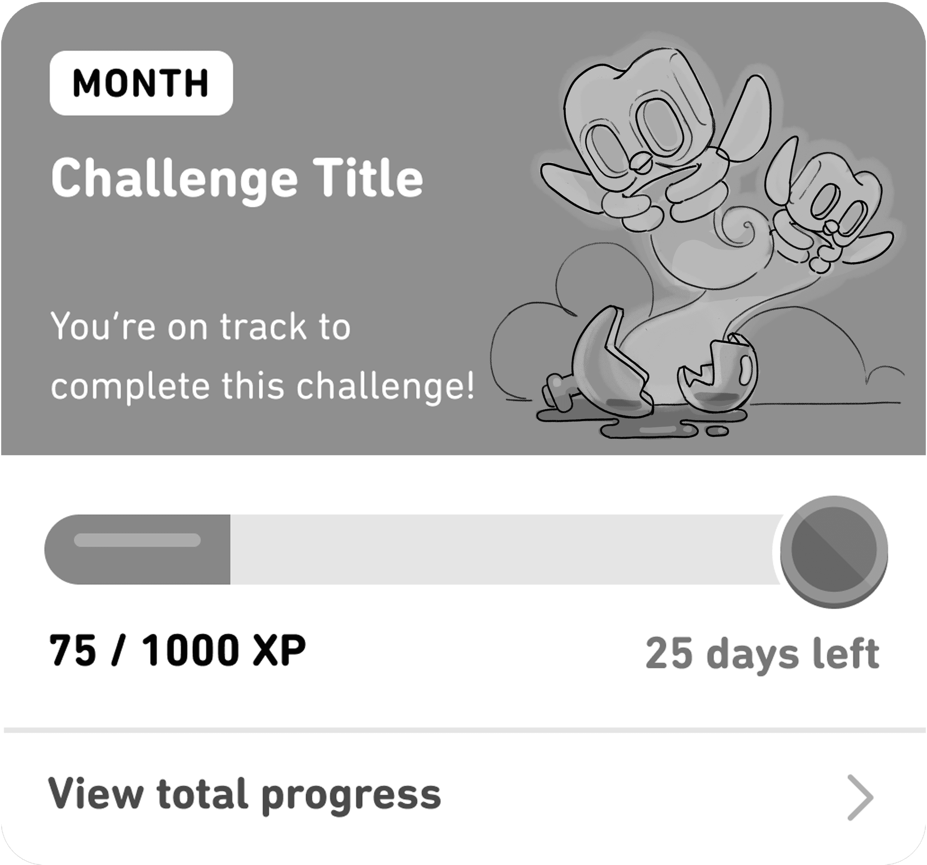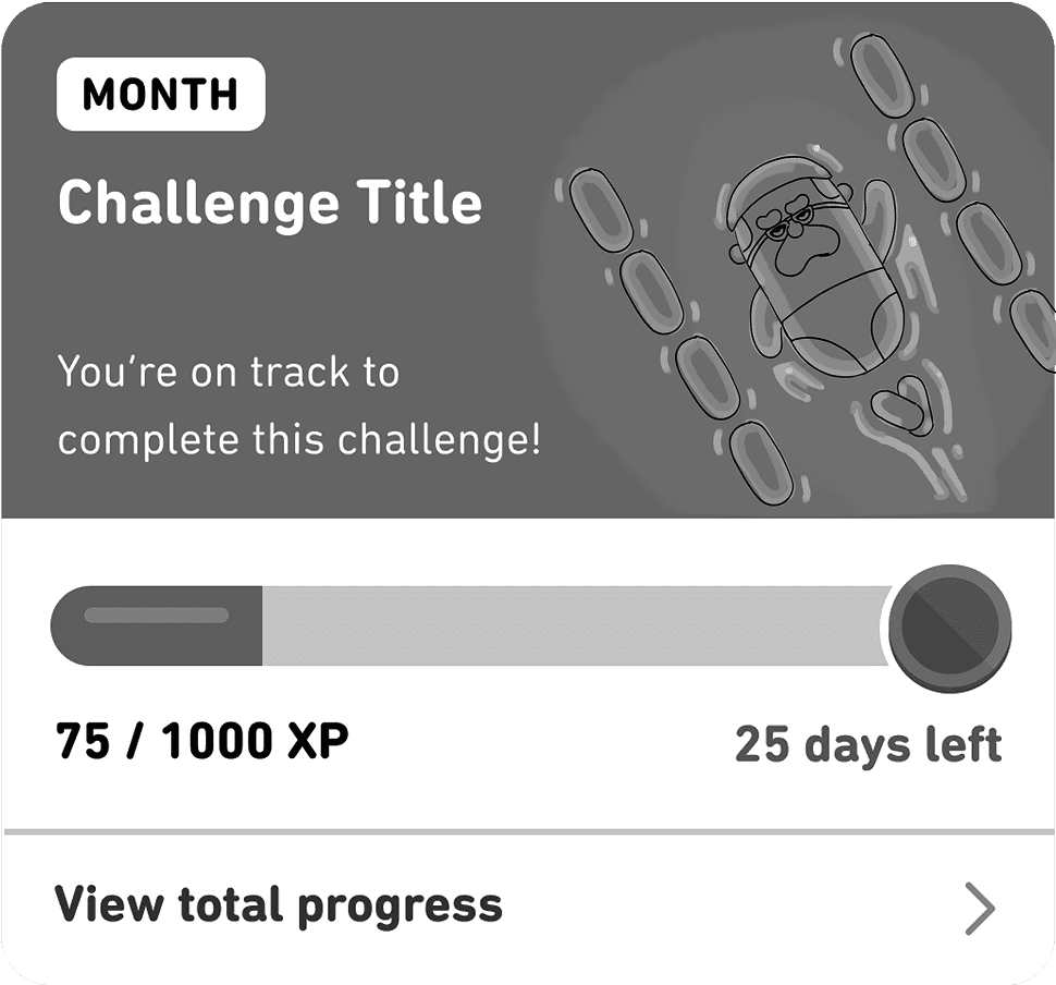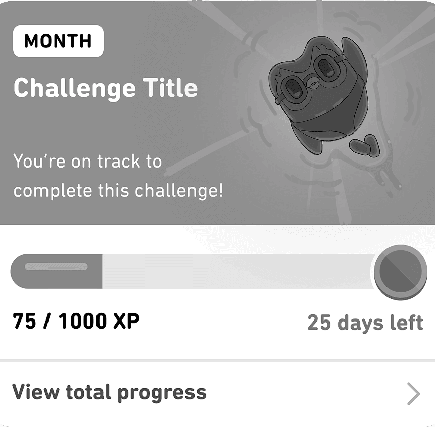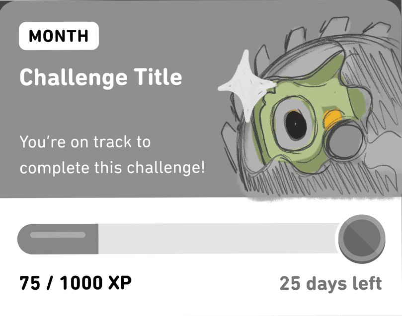 Duolingo's Monthly Challenges invite users to complete a certain number of lessons within a month, and doing so wins them a badge! Each month has a different theme. I conceptualized two illustrations for the months of August and October, the former being "Owlympics" and the latter being Halloween.