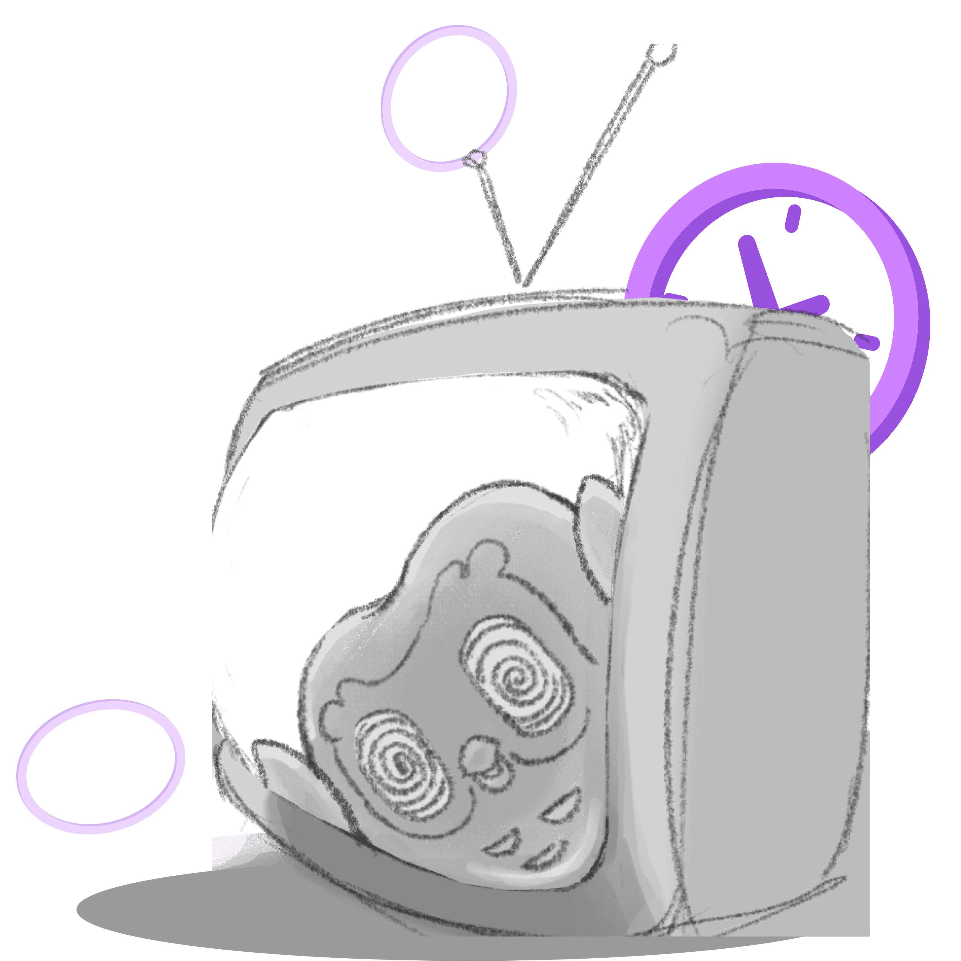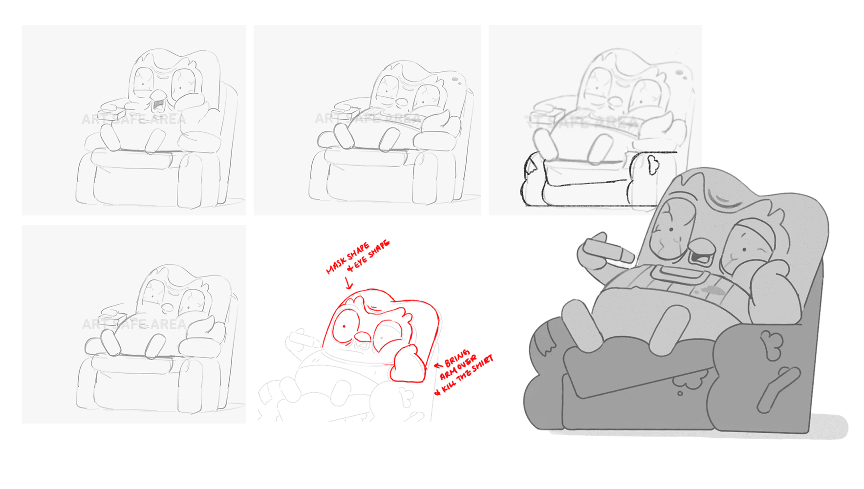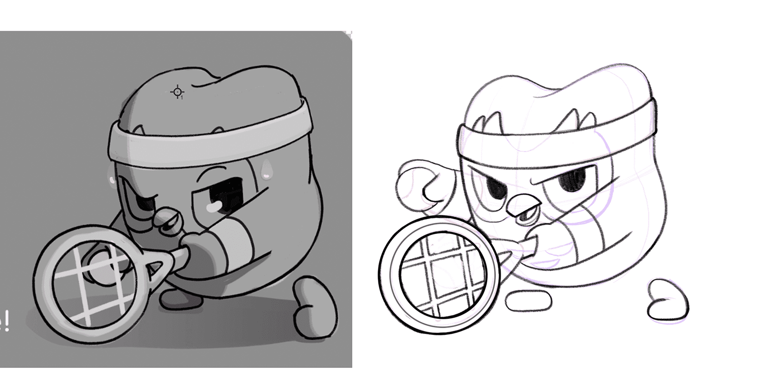 For the more extreme users who put in lots of hours on the app, I pulled inspiration directly from the iconic Squidward meme from Spongebob. I explored multiple sketch iterations, gradually exaggerating the pose and expression until the joke landed clearly.